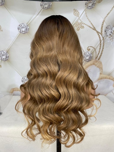 Elevate your style with our Full Frontal HD Wig in a captivating honey blond ombre, featuring a luxurious body wave texture. Crafted with precision, it boasts bleached knots, a pre-plucked hairline, and an adjustable band for a glueless, natural look. The invisible lace effect enhances the seamless blend, ensuring a sophisticated and effortlessly glamorous appearance.